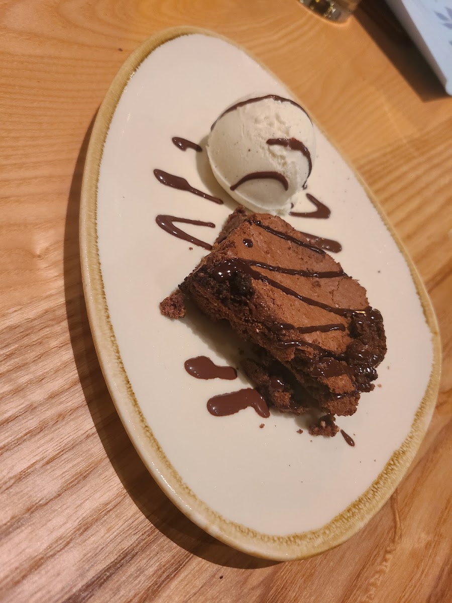Came here for some drinks and food before a show and the atmosphere is such a fun vibe! Drinks and food came out quickly after they were ordered and the cocktails were some of the best I’ve had. The old fashioned and their bananas in pajamas are delightful! For food I ordered a chicken plate, a side of airfried brussel sprouts, and crème brûlée for dessert. Will definitely come back again!
