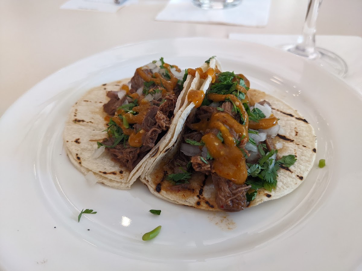 ***Happy Hour Chronicles*** So I've been wanting to try this place for a while and was excited to be going for their "peach week" special + happy hour. I tried a peach daiquiri and my friend had the peach margarita, both were strong but fairly tasty. We both also enjoyed the "boss lady" drink off their limited happy hour menu featuring a cute basil leaf garnish, that drink was the favorite because it was actually pretty refreshing and not overly strong. For food I would highly recommend the barbacoa tacos and arancini, those were both delicious! I feel like for a happy hour this place is still a little pricey, but if that doesn't matter to you then definitely check it out