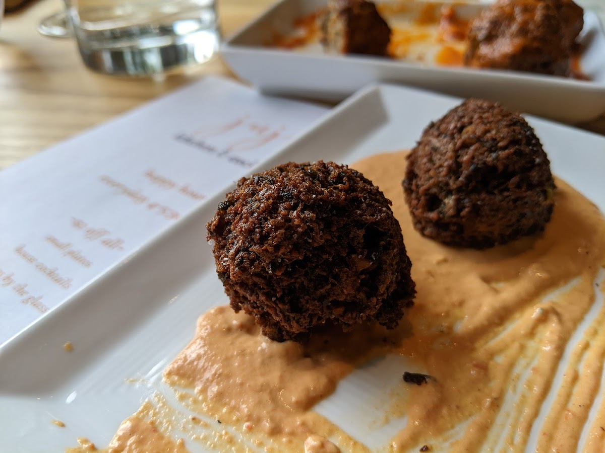 A new tapas/small plate place from a great, local chef. They had a good selection of drinks, both alcoholic and non-alcoholic. The menu was simple, affordable and a range of tapas/small plate options. The food was DELICIOUS, and perfect for these hot summer days. The service was fantastic, as they were both friendly and tentative to our needs. Plenty of seating, both at the bar or at tables throughout. It was busy with people after work and seemed like a great place to get happy hour and a light bite to eat! Definitely will come back with friends.